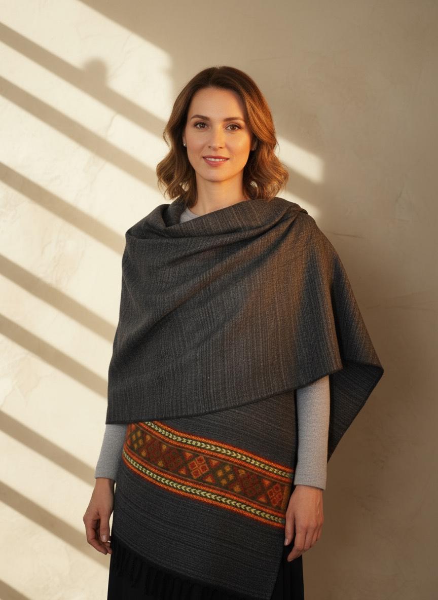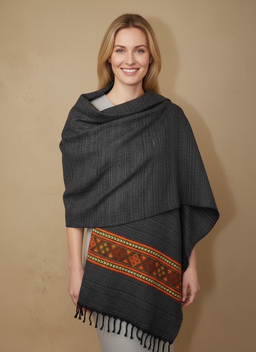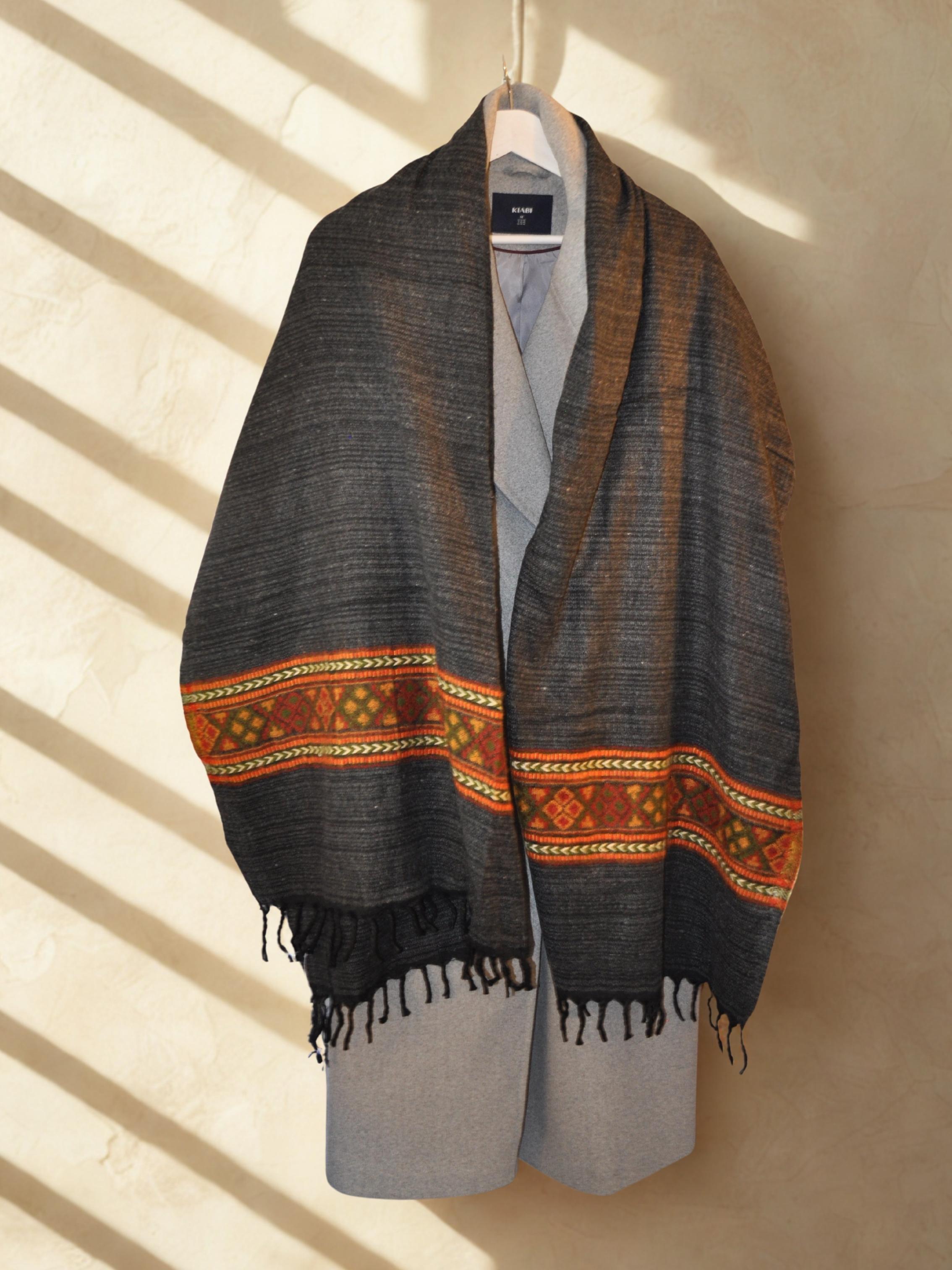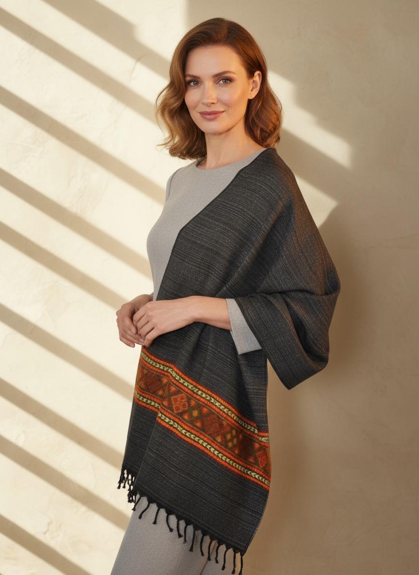 Magnifique châle tissé à la main en laine de yak et cachemire.