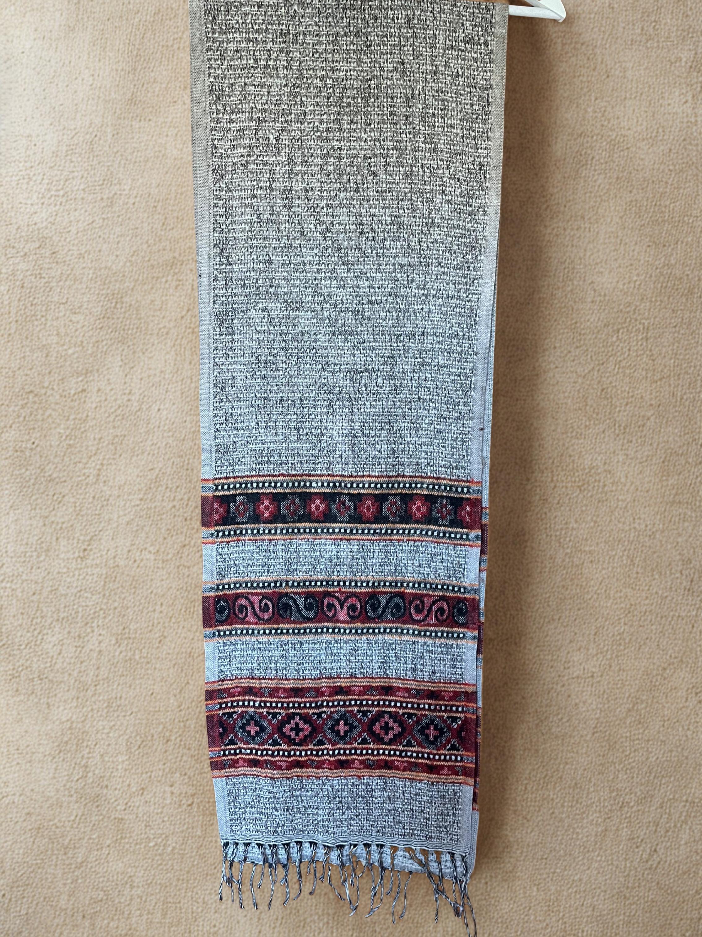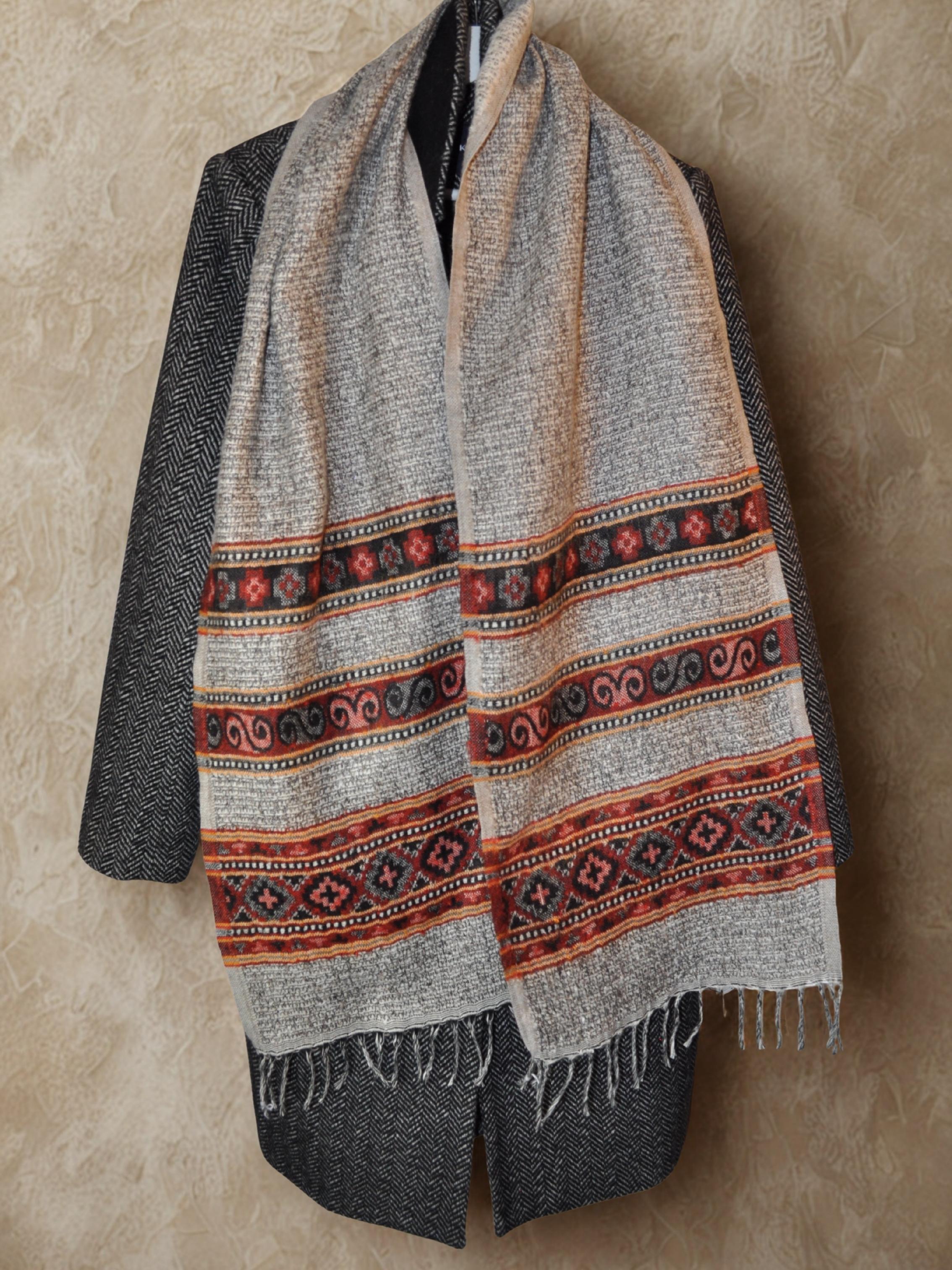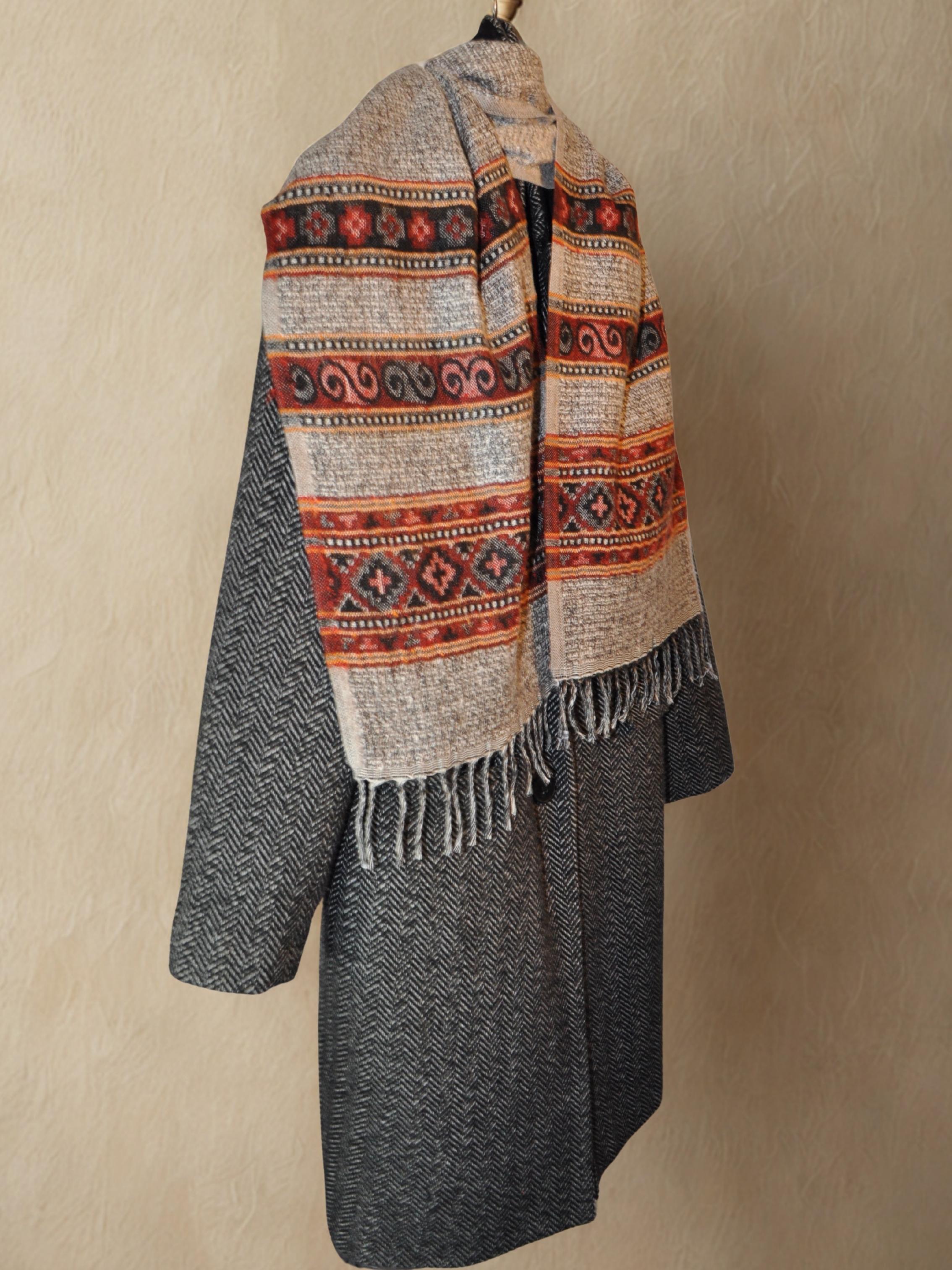 Écharpe en Laine de Yak Motifs Ethniques et Franges Style Chaleureux et Confortable Accessoire Élégant 180x31 cm