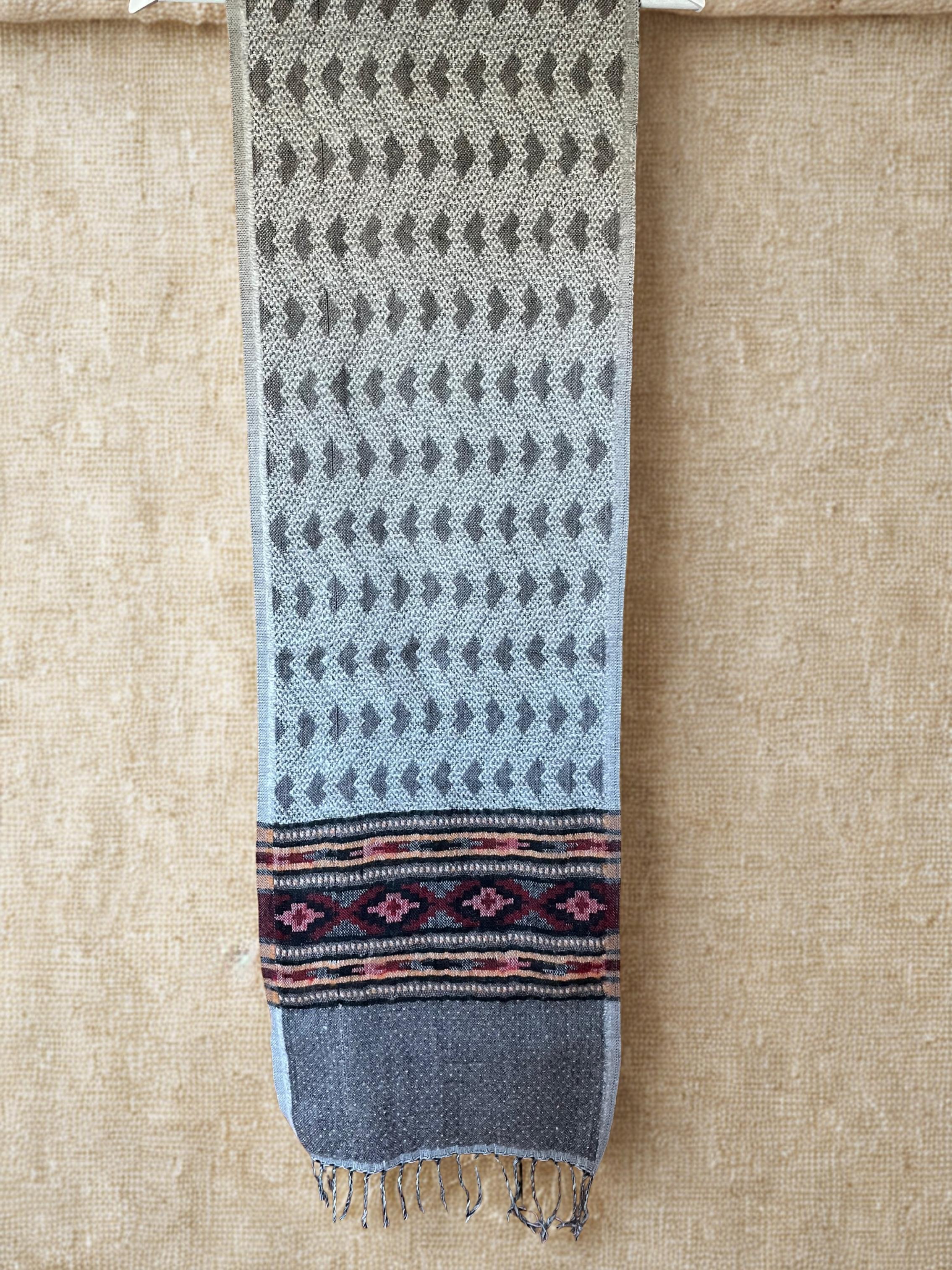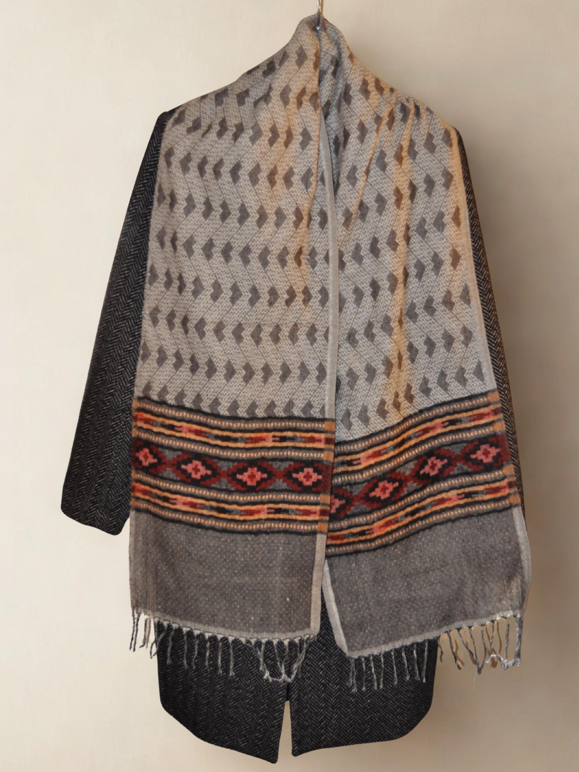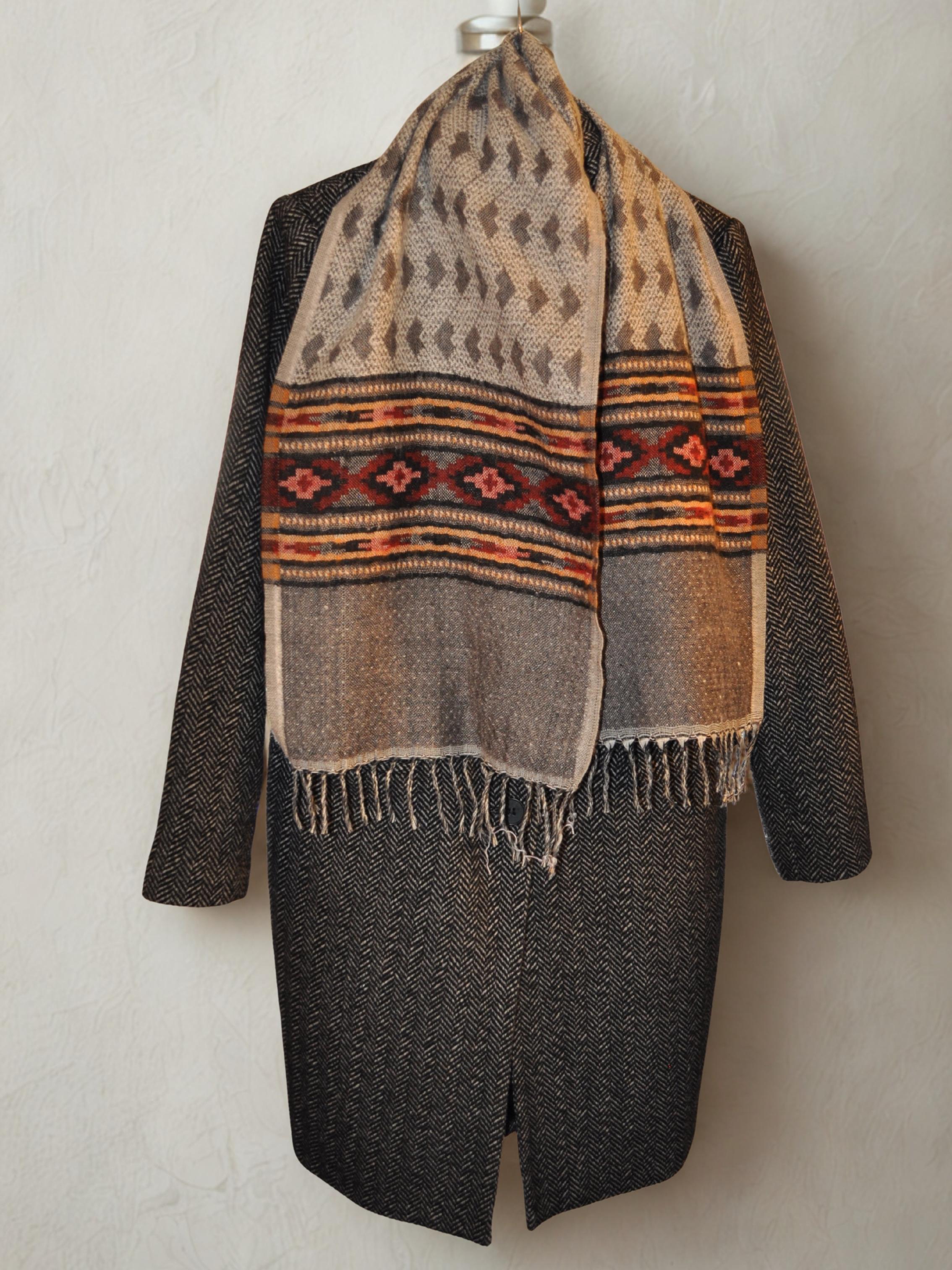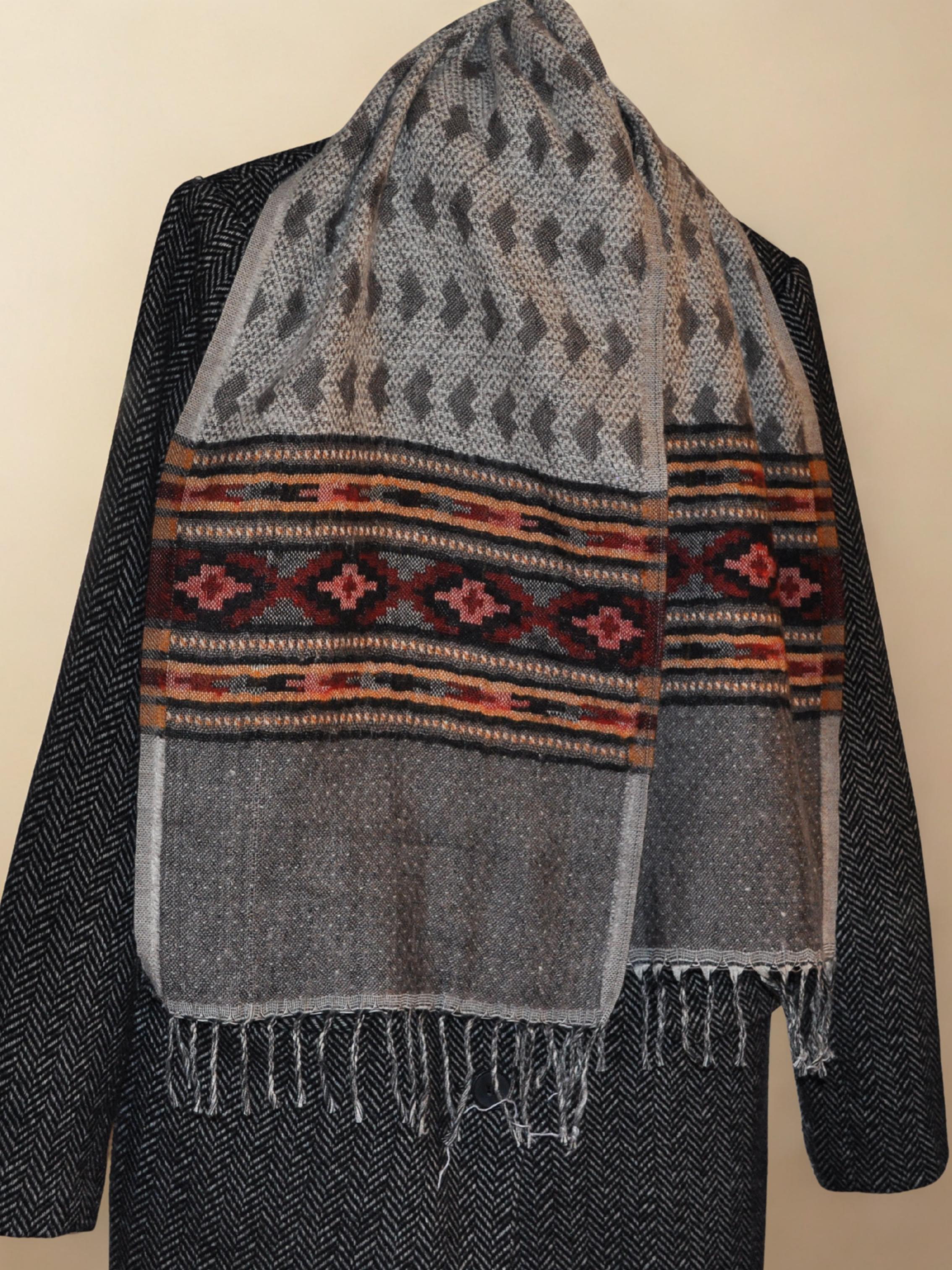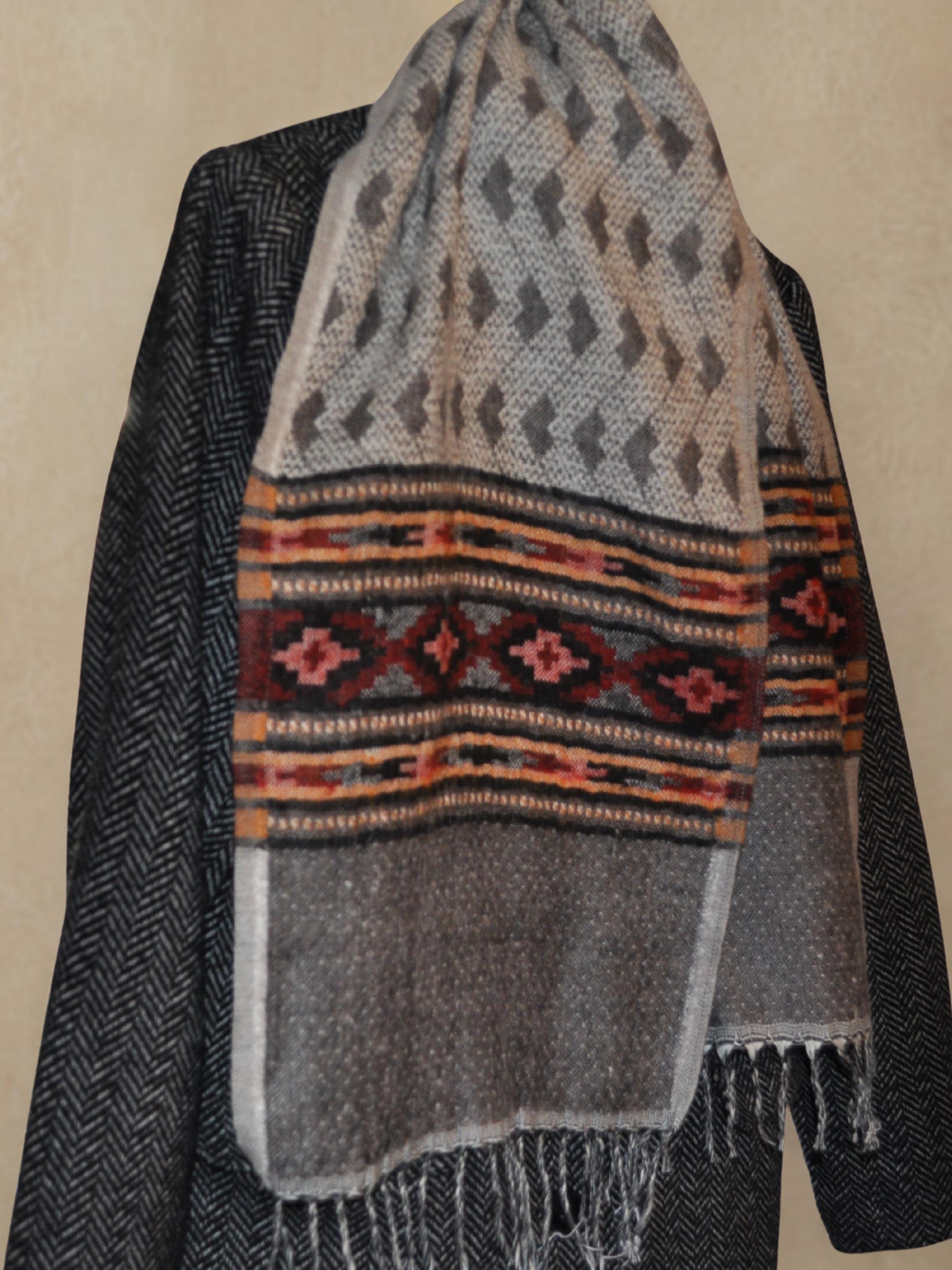 Écharpe en Laine de Yak & Cachemire Motifs Ethniques et Franges Style Chaleureux et Confortable Accessoire Élégant 200x31 cm