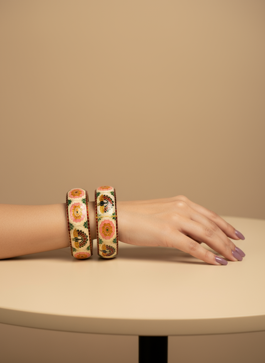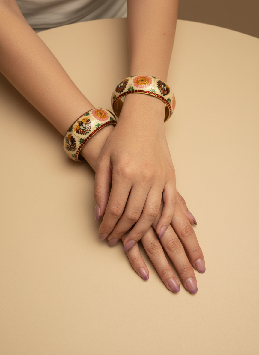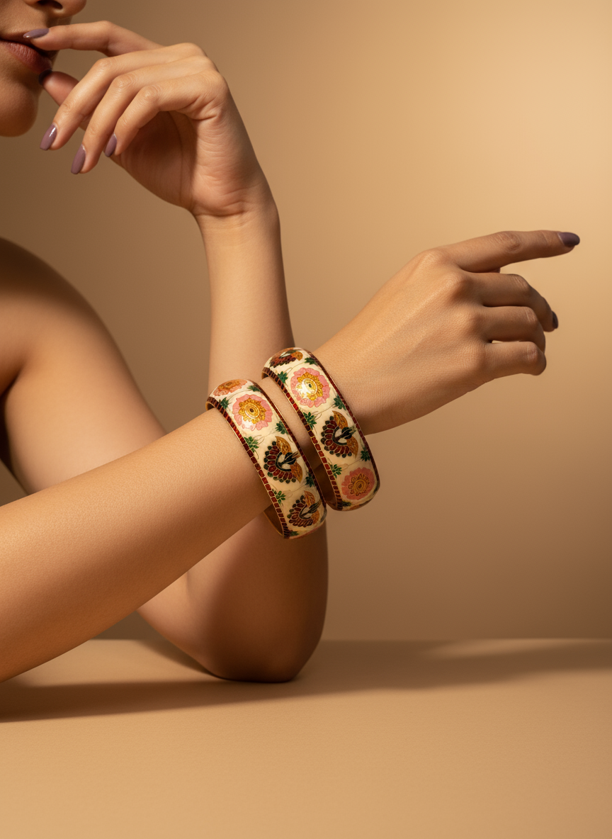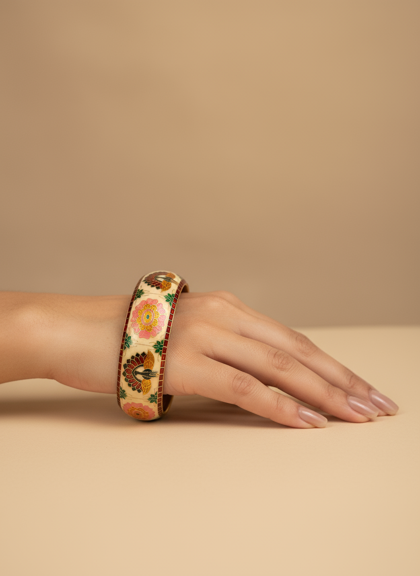 Bracelet peint à la main, bracelet rigide émaillé – Élégance dorée et esprit ethnique
