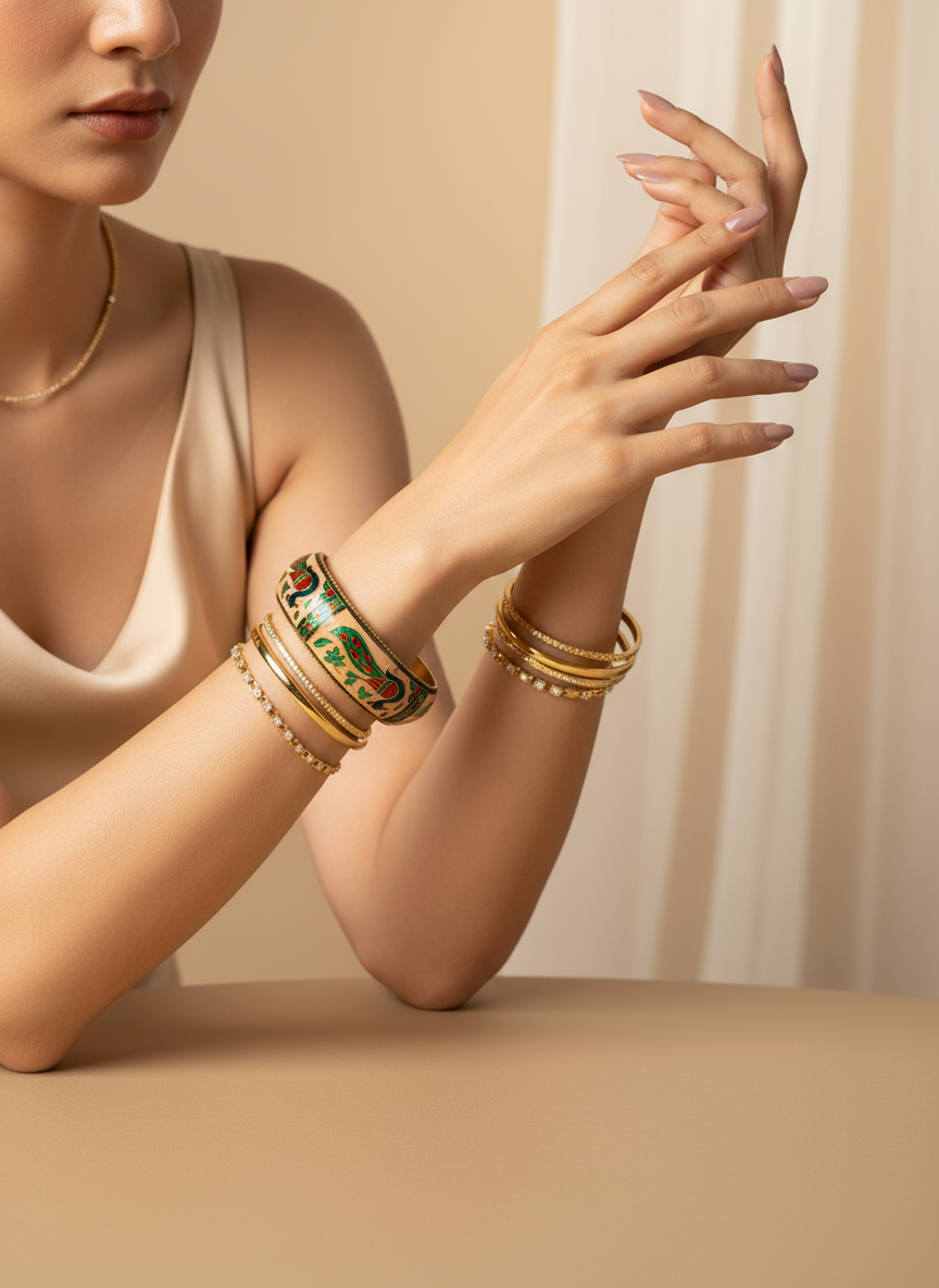 Bracelet rigide émaillé – Élégance dorée et esprit ethnique